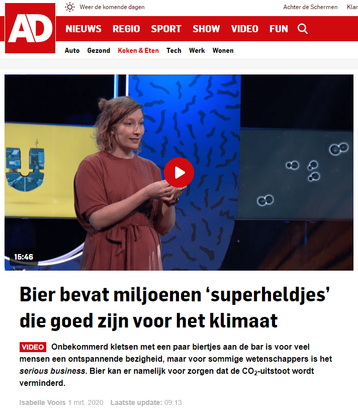 “Onbekommerd kletsen met een paar biertjes aan de bar is voor veel mensen een ontspannende bezigheid, maar voor sommige wetenschappers is hetย serious business. Bier kan er namelijk voor zorgen dat de CO2-uitstoot wordt verminderd.” Het AD heeft een feature geschreven over mijn Universiteit van Nederland college!